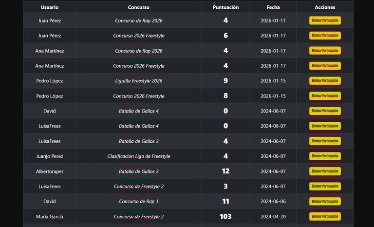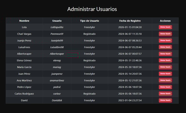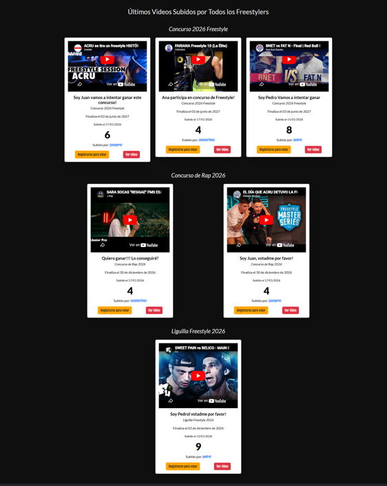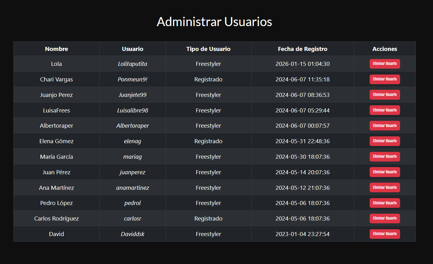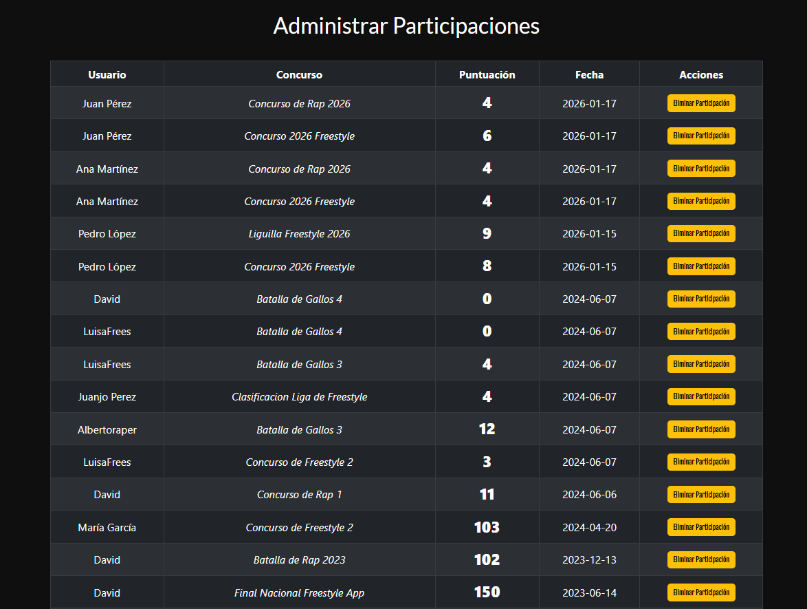 A responsive web application built with PHP, MySQL, and JavaScript, focused on creating an interactive environment for freestyle rap enthusiasts.