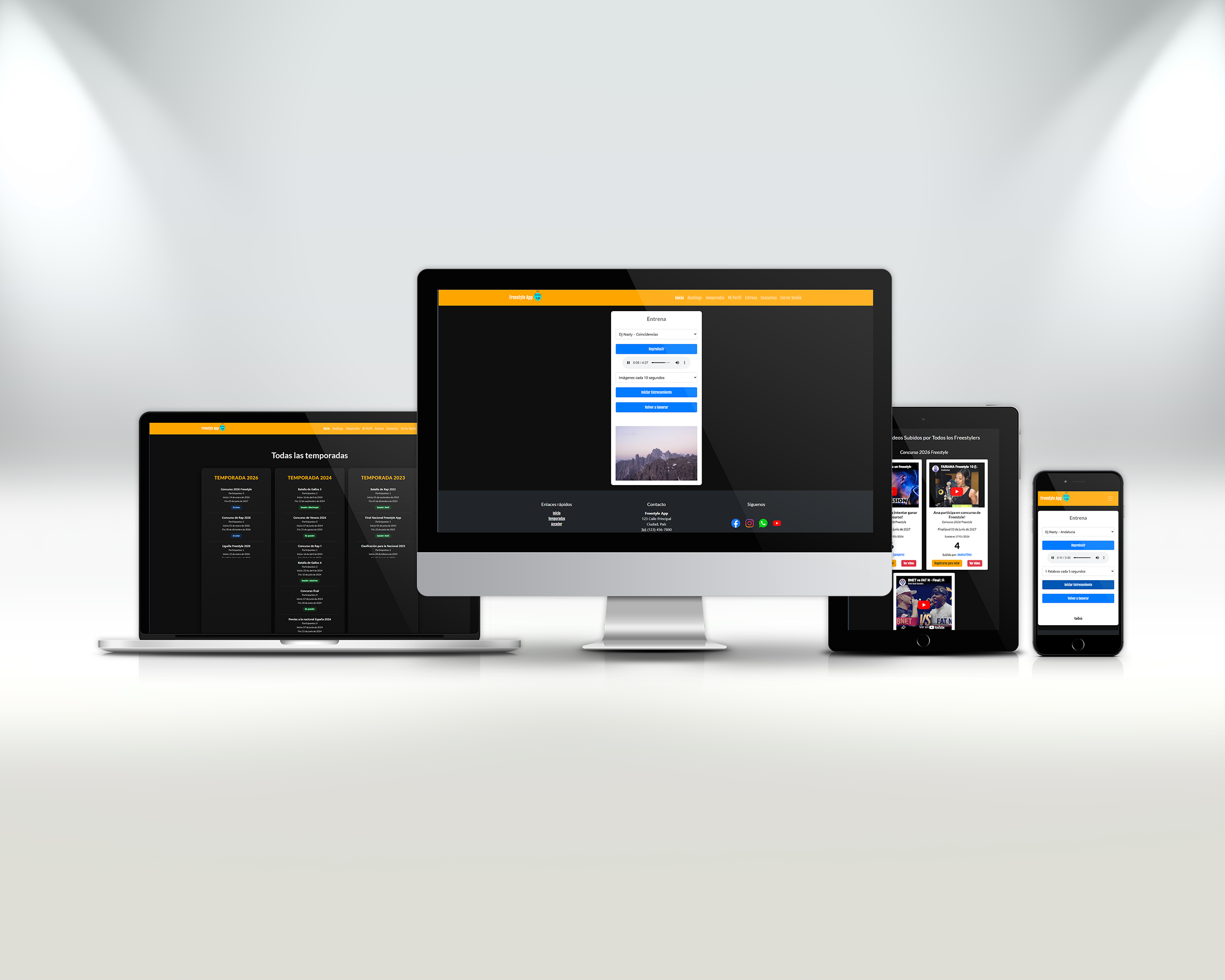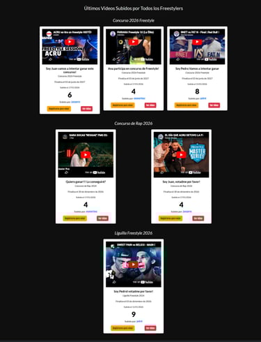 Freestyle App allows users to participate in contests, upload videos, vote on performances, and improve their skills through structured training modes. The platform combines community interaction with competitive features, simulating a real freestyle ecosystem.